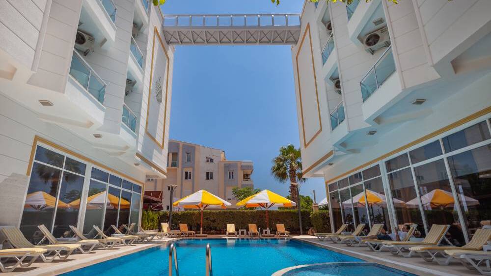 Modern ve ferah odalarımız, açık yüzme havuzumuz, restoranımızda sunulan lezzetli açık büfe kahvaltımız ve profesyonel hizmet anlayışımızla sizleri Akdeniz’in sıcak atmosferinde ağırlamaktan mutluluk duyarız.